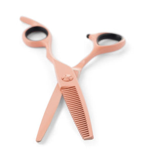The absolute all new Matsui Pastel Peach Scissors are here and boy are we inlove!? With the softest most perfect pastel peach colour, it's sure to have you feeling like it's summer all year round. Handcrafted with none other than Hitachi Japanese steel which as we all know is one of the best steels around that performs time and time again. These thinning scissors will be the envy of every hairdresser that see's them.