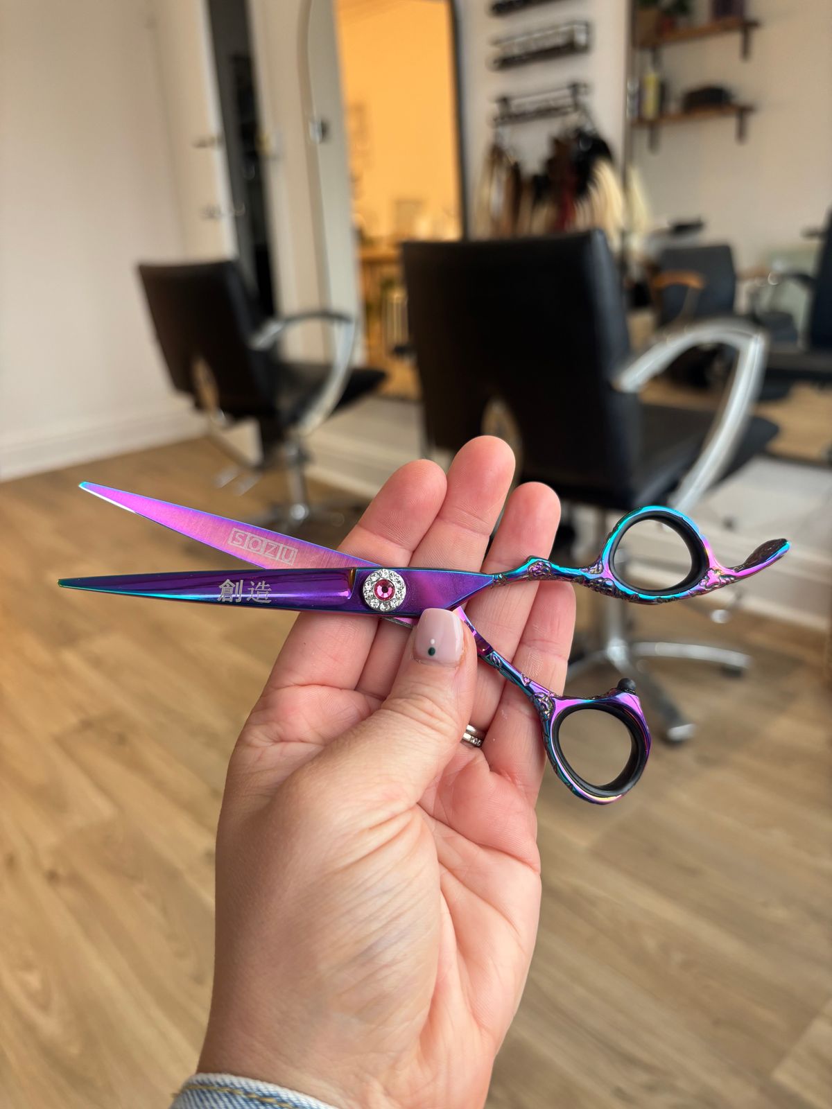 Good shears for cutting extensions, smooth to use and comfortable in the hand. The rainbow finish looks nice too.