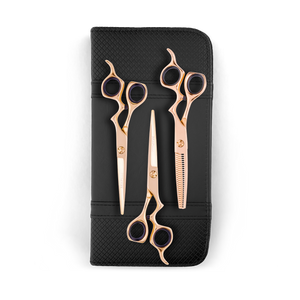 How much do we go on about support and comfort? Well look no further because these new Matsui Classic Ergo Support Rose Gold 5.5 and 6 Inch scissors with thinners is the only set you'll need! With its unique design and spots for each finger to sit comfortably giving you ultimate control, nothing will compare to this combo.