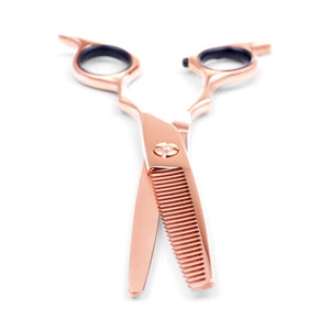 What's better than a single!? A combo obviously! Are you feeling a little creative and want to try using your left OR your right? Well with these crazy but cool new Rose Gold Matsui Double Threat reversible scissors and thinners – you can! Flip it, reverse it call it what you want but these scissors are what every creative stylist needs.