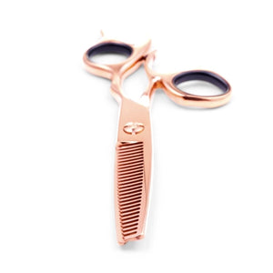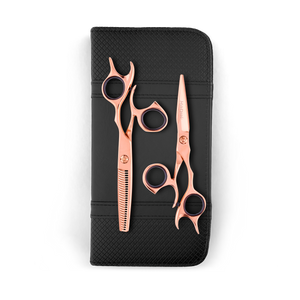Our all new Matsui Rose Gold Super Ergo Devil Scissors and thinners combo that will have you cutting in not only comfort but devilish style too. With its sleek and ergonomic design, these scissors and thinners will give you the confidence every professional should have when it comes to comfort and being able to open and close your hand in a far more natural position.