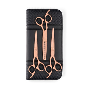 The absolute all new Lefty Matsui Pastel Peach Scissors are here and boy are we inlove!? With the softest most perfect pastel peach colour, it's sure to have you feeling like it's summer all year round. Handcrafted with none other than Hitachi Japanese steel which as we all know is one of the best steels around that performs time and time again. This triple set will be the envy of every hairdresser that sees them.