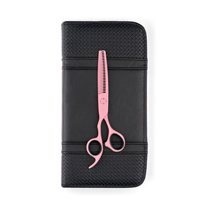 The absolute all new Lefty Matsui Pastel Pink Thinning Scissors are here and boy are we inlove!? With the softest most perfect pastel pink colour, it's sure to have you feeling like it's summer all year round. Handcrafted with none other than Hitachi Japanese steel which as we all know is one of the best steels around that performs time and time again. These thinning scissors will be the envy of every hairdresser that sees them.