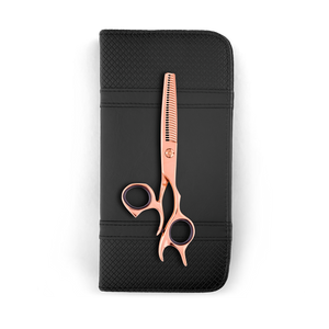 NEW Matsui Rose Gold Super Ergo Devil Thinning Scissors that will have you cutting in not only comfort but devilish style too. With its sleek and ergonomic design, these thinners will give you the confidence every professional should have when it comes to comfort and being able to open and close your hand in a far more natural position.