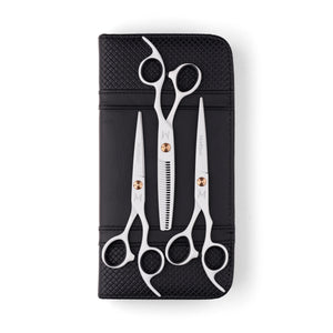 The Matsui Ice is fun, fresh and light weight while remaining true to the Matsui name and style. The Matsui Ice is great for point cutting, dry cutting and a general great all rounder cutting scissors. The ultra lightweight alloy handle and slimline blades reduces the overall weight significantly leaving you with quite possibly the most comfortable scissors you've ever held!
